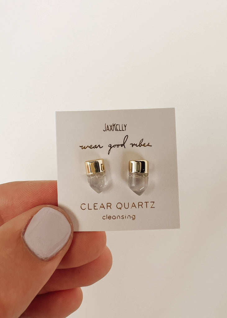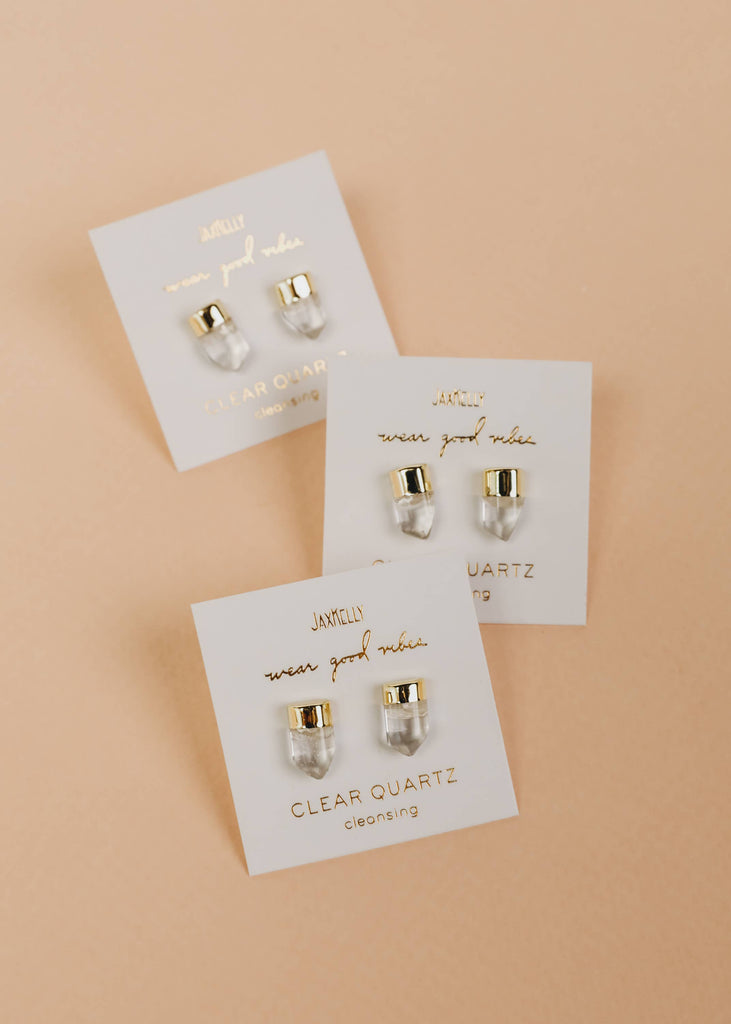 JaxKelly - Gold Dip Point - Clear Quartz - Gold Earrings