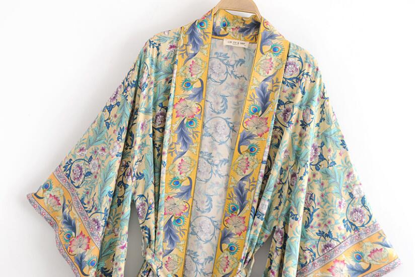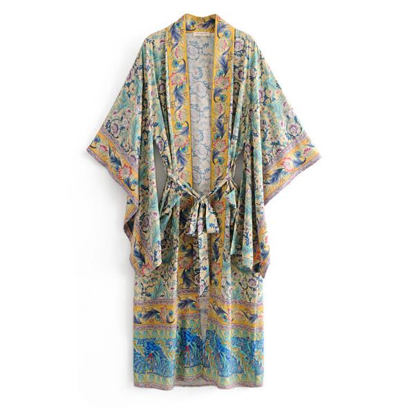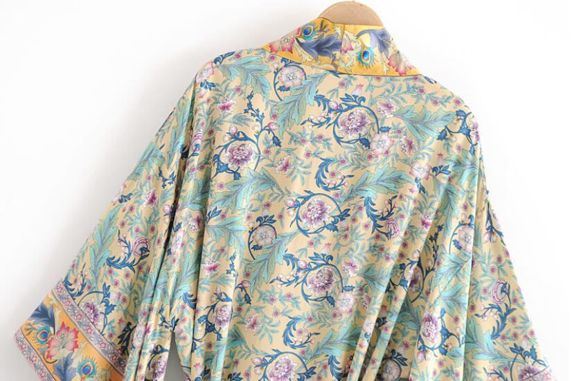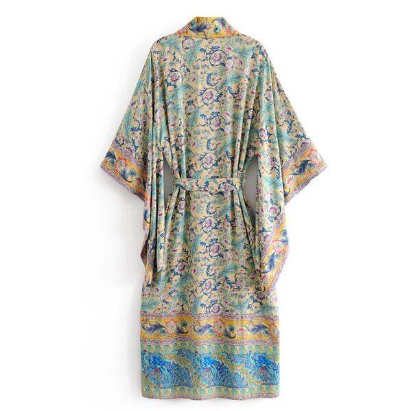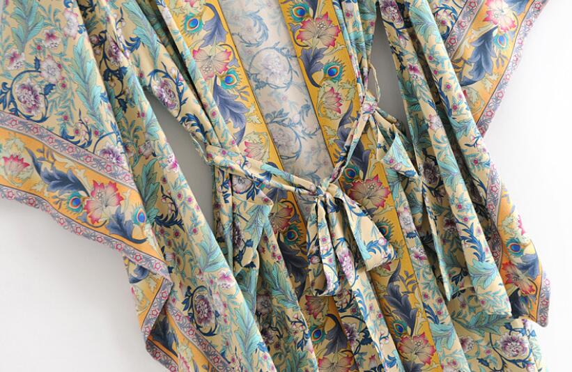 Bohemian V neck Flower Print Kimono