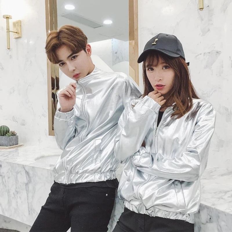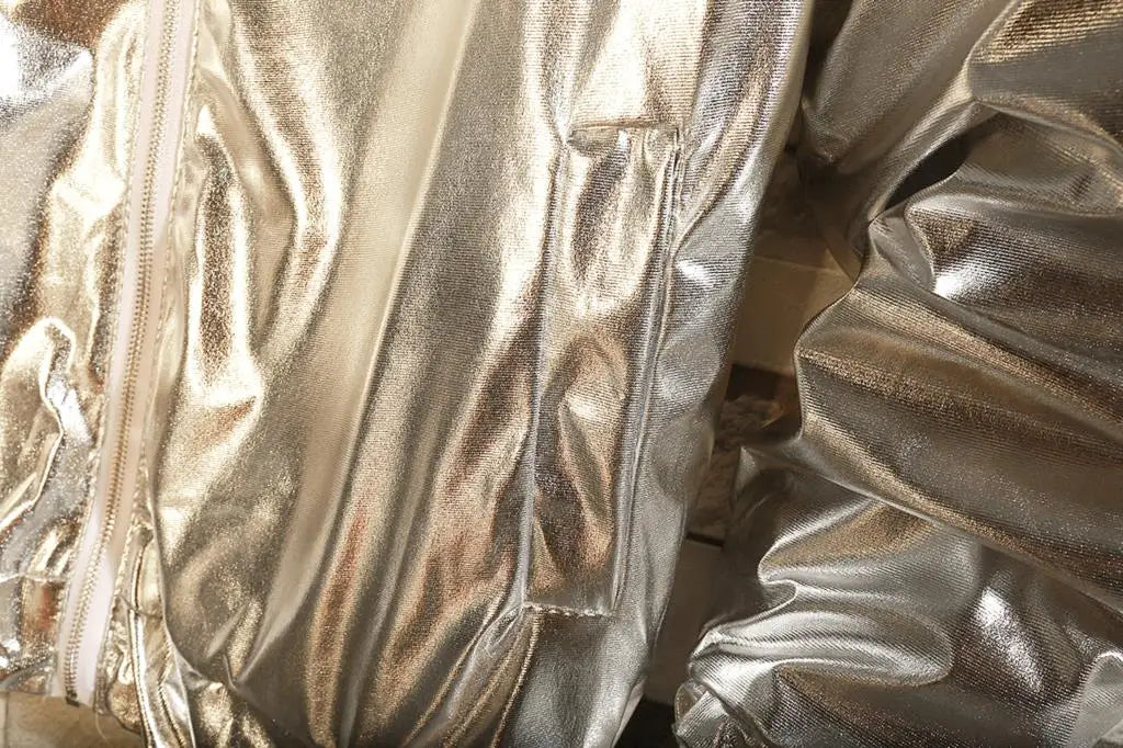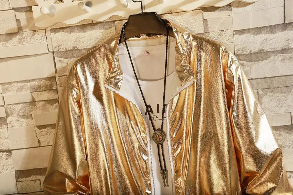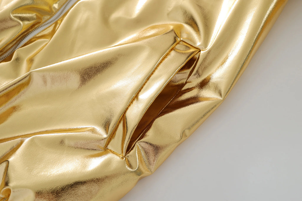 High Street Style: Embrace the latest trends with this Gold Windbreaker Jacket, a quintessential piece for high street fashion.