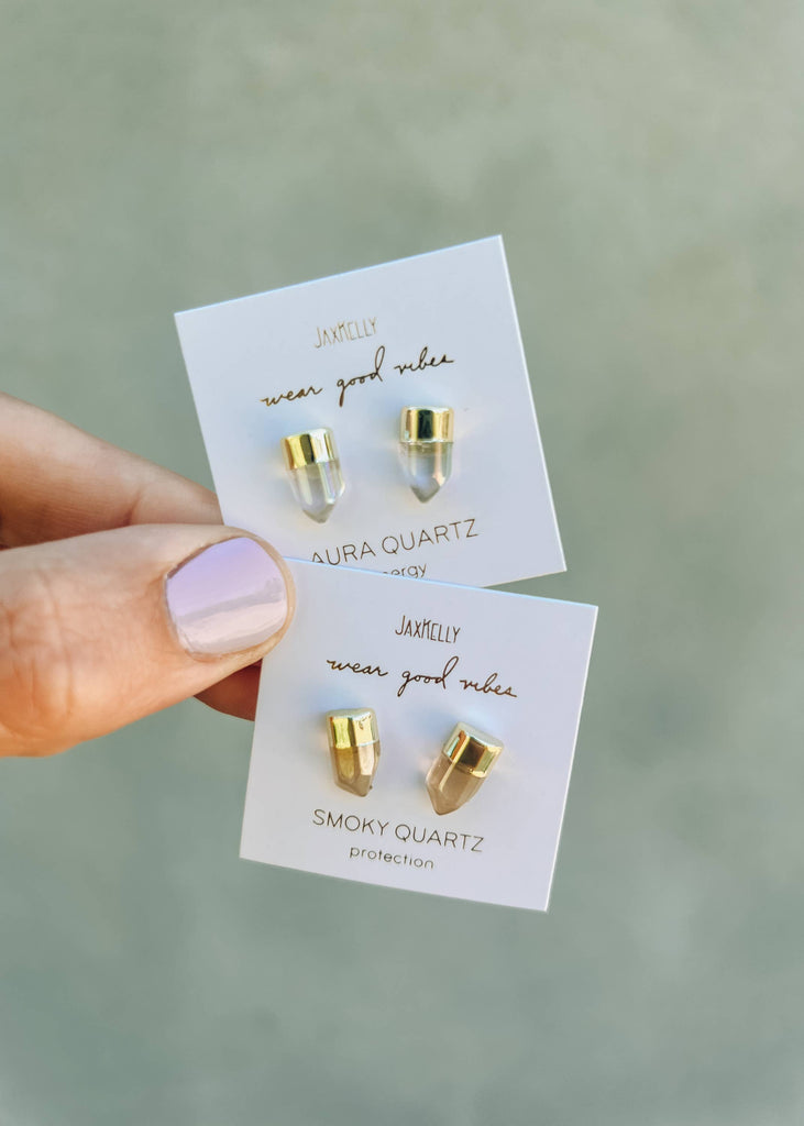 JaxKelly - Gold Dip Point - Aura Quartz - Gold Earrings