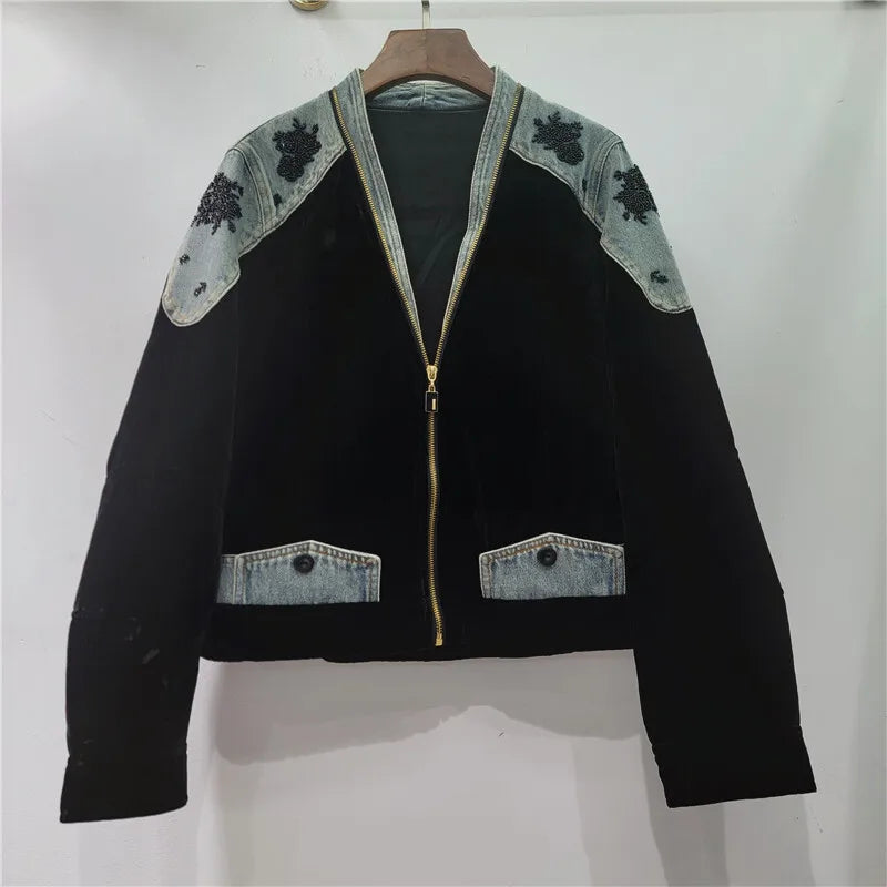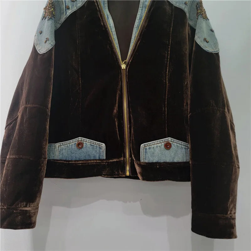 Patchwork Design: The Patchwork Zipper Vintage Jacket boasts a unique patchwork design, offering a blend of vintage charm and modern style., All-Season Wear: Designed for all seasons, this jacket is a versatile piece that can be layered or worn solo, depending on the weather.