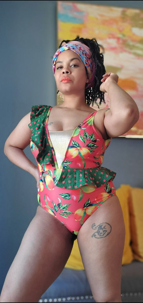 This is the suit for the Summer, it's playful ruffle sleeve is giving all the 80's vibies! Whether you're beaching or outback in the kitty pool. Be Posh! We have a few fun colors and styles to choose from. Due to COVID- delivery is averaging about 20-24 days. Please message us if you have questions about sizing.